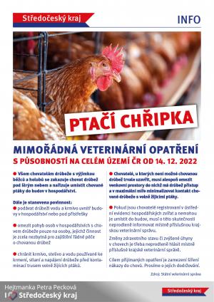 Státní veterinární správa (SVS) z důvodu přibývajících ohnisek vysoce patogenní ptačí chřipky v České republice vyhlašuje mimořádná veterinární opatření s celostátní působností.