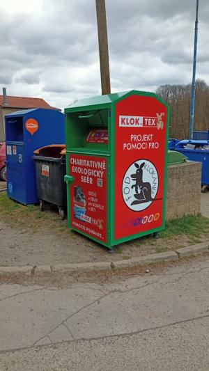 nově můžete najít v naší obci dva charitativní kontejnery KLOKTEX. První je umístěný ve Statenicích u obchodu Sadil a druhý najdete v Černém Vole v ulici Únětická.