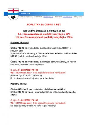 OD 1.6.2021 VČAS NEZAPLACENÉ POPLATKY ZA ODPAD A PSY BUDOU NAVÝŠENY O 50%.
