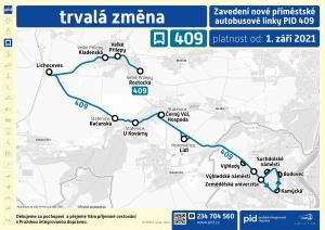 Od 1. září má začít jezdit nová autobusová linka č. 409 spojující Velké Přílepy, Lichoceves, Statenice, prodejnu Lidl v Horoměřicích a Suchdol.