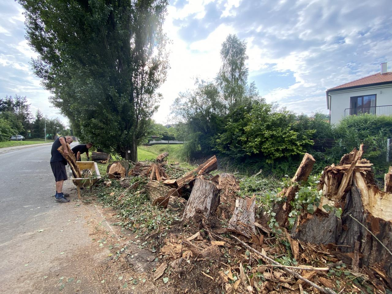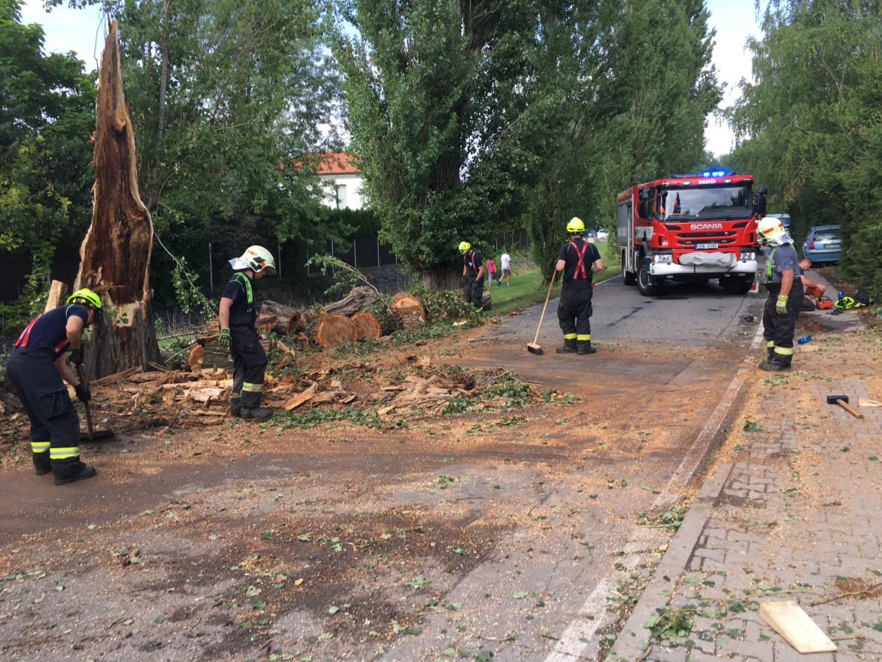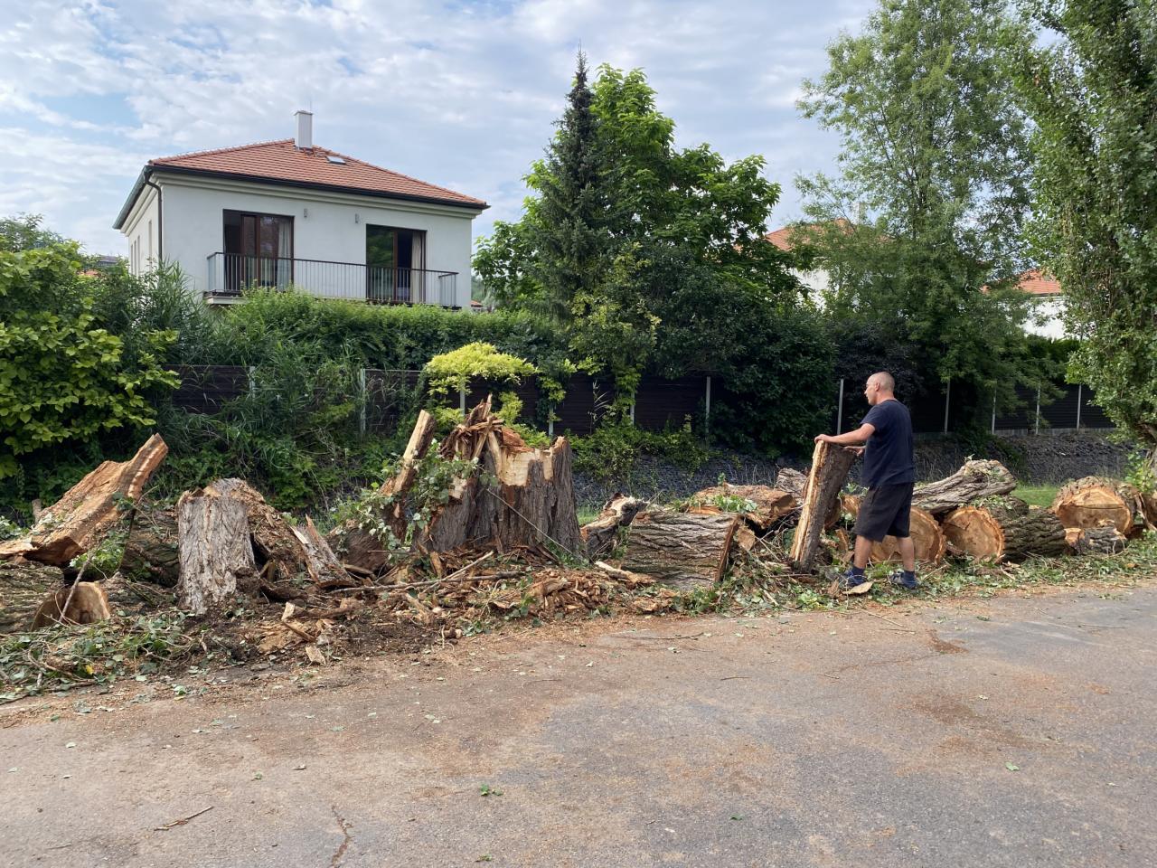 Dnes se v důsledku intenzivní bouřky s abnormálně silnými poryvy větru skácel topol na ulici Statenická. Já jsem se o tom dozvěděla z fb a dorazila namísto asi hodinu po pádu stromu. Naštěstí prý padal pomalu a tak, že způsobil naprosto minimální škodu a nikdo nebyl zraněn. Na místo dorazila obratem policie ČR a hasiči z Roztok, pod které naše obec spadá, a dále se zbytkových odklízecích prací ujaly technické služby obce, které jsem zavolala a kterým za jejich zásah moc děkuji. Oba majitelé nejvíce zasažených nemovitostí jsou naštěstí pojištěni a osobně jsem s nimi mluvila.