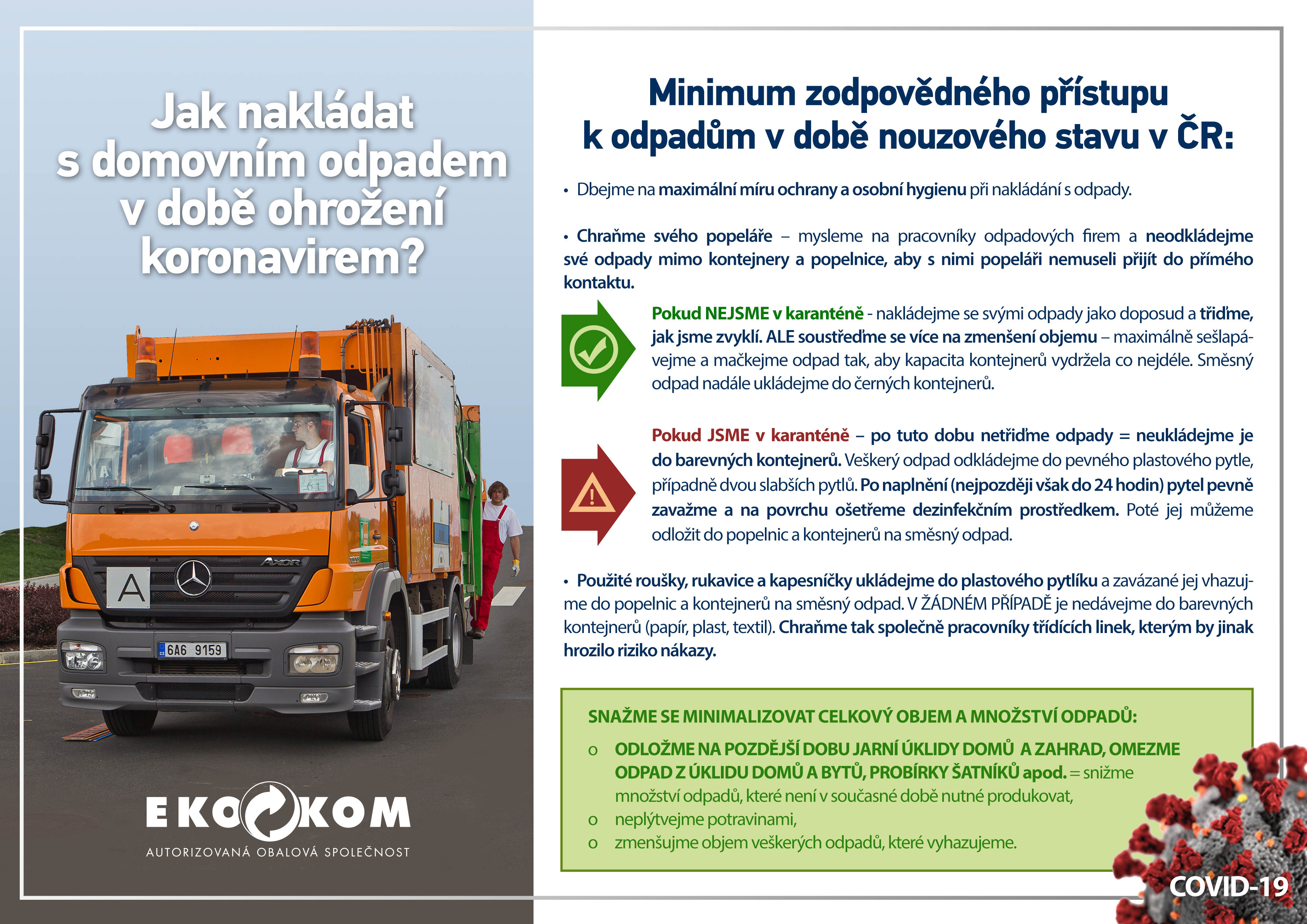 informace ke svozu odpadů v době epidemie COVID-19