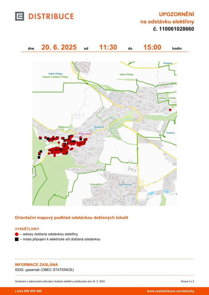 Vážení občané, rádi bychom vás informovali o plánovaném přerušení dodávky elektřiny ve vaší lokalitě.
