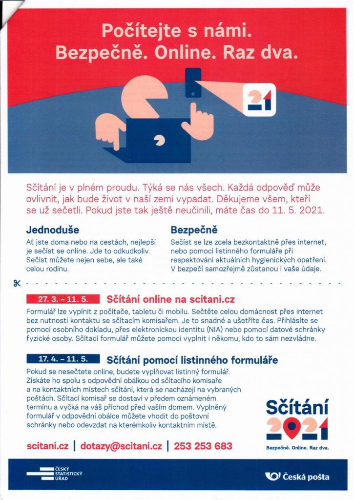 Připomínáme, že sčítání je v plném proudu. Do 11.5. je možnost sečíst se online na www.scitani.cz.