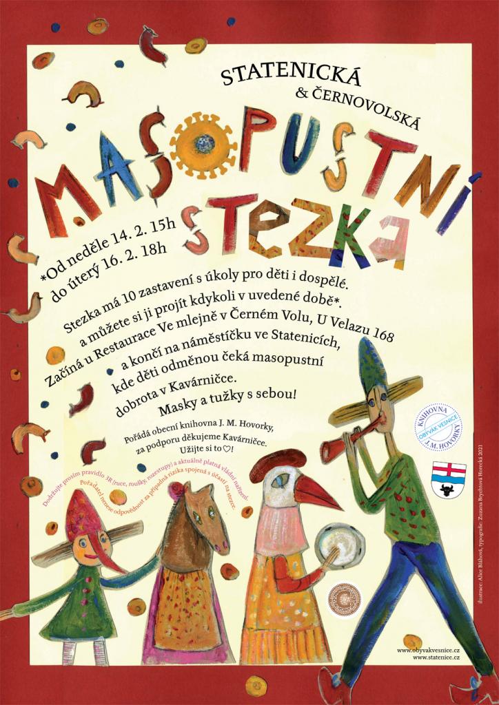 Zveme Vás na masopustní stezku, kterou pořádá knihovna J.M. Hovorky od neděle 14.2. v 15:00h až do úterý 16.2. do 18:00h.