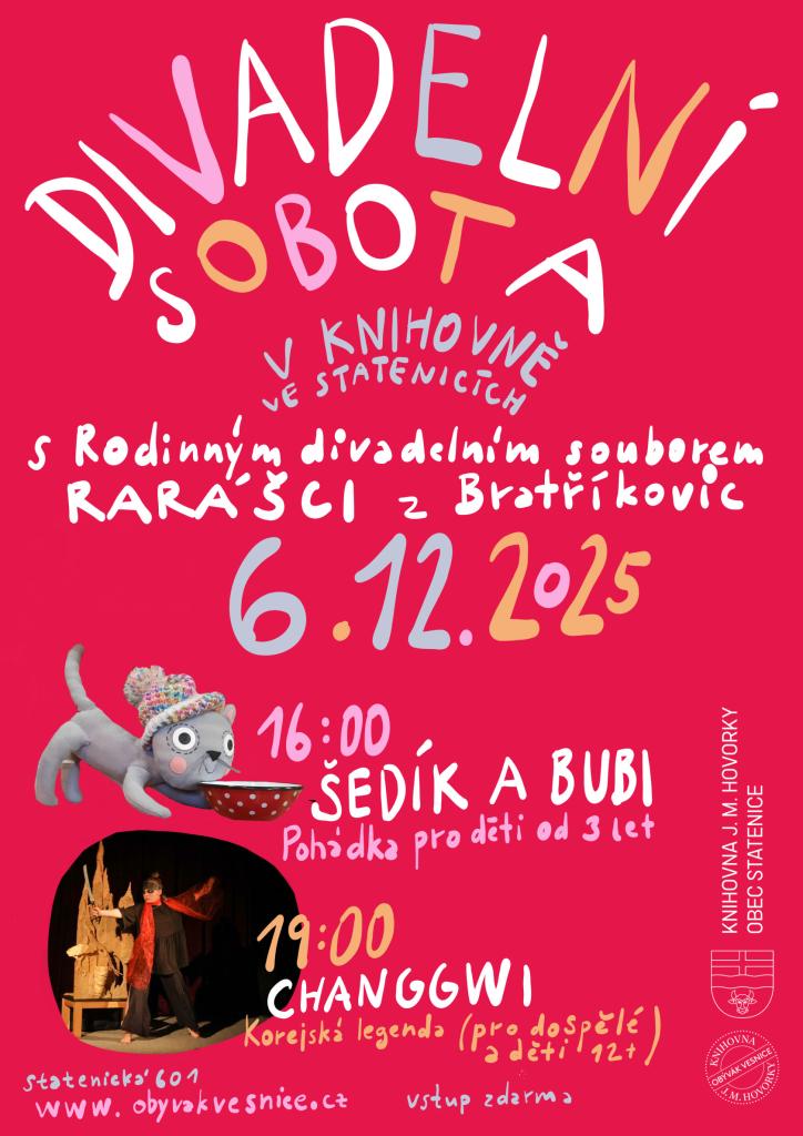 Přijďte se podívat na autorský projekt Anny Bernardové, který spojuje korejskou kulturu s divadelním uměním. Představení Changgwi je určeno pro starší děti a dospělé a nabídne jedinečný pohled na prastarou legendu. Po představení se můžete těšit na neformální besedu s autorkami. Vzhledem k omezené kapacitě knihovny doporučujeme rezervaci místa.