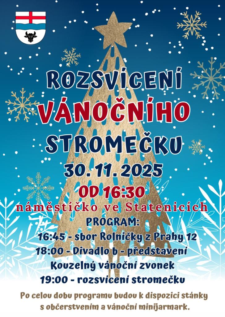 Srdečně vás zveme na rozsvícení vánočního stromečku, které proběhne 30. listopadu 2025 od 16:30 na náměstíčku ve Statenicích.